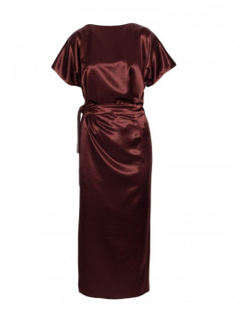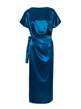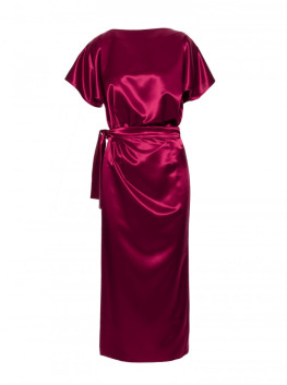97% polyester 3% elastane MATERIAL Fabric: satin – smooth, glossy PRODUCT DETAILS Neckline: boat neck Sleeves: short, loose Skirt: pareo-style wrap tied around the waist Fastening: waist tie Lining: none Model: M887 Designed and made in Poland The model in the photo is 171 cm tall and is wearing size S STYLE & CUT Style: elegant satin midi dress Shape: loose top