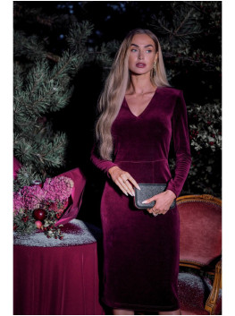80% cotton 20% polyester MATERIAL Fabric: knit – soft, elegant velvet PRODUCT DETAILS Neckline: deep V-neck Sleeves: long, straight Closure: concealed back zip Pockets: none Lining: none Model: M889 Designed and made in Poland The model in the photo is 171 cm tall and is wearing size S STYLE & CUT Style: classic pencil midi dress Shape: fitted top and bottom wit