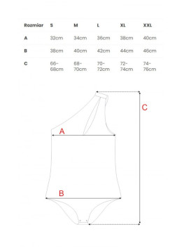 95 % poliesteris 5 % elastano Bodis su iškirpte ant peties - originalus ir elegantiškas aksesuaras prie įvairių vakarinių drabužių. Susikurkite savo unikalų įvaizdį! INFORMACIJA APIE GAMINĮ: Trikotažo audinys iškirptės detalė ant vieno peties apatinės kelnaitės, užsegamos smeigtukais mūsų modelis yra 171 cm ūgio, dėvi S dydį