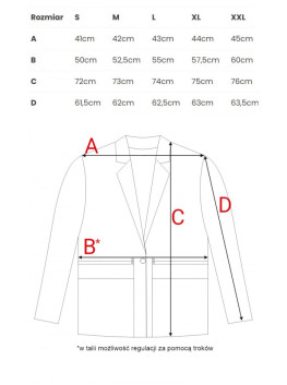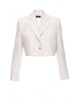 70% polyester 27% wiskoza 3% elastane PRODUCT INFORMATION: woven fabric crop blazer with a collar single heart-shaped button fastenning lined our model is 171 cm tall and wears size S designed and made in Poland