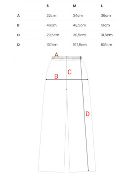 95% cotton 5% elastane MATERIAL Material: ribbed knit fabric, weight 250 g PRODUCT DETAILS Waist: mid-rise Fastening: none – elastic waistband Pockets: none Legs: long, straight, slightly flared Lining: none Model: B300 Designed and made in Poland from fabric produced in Poland The model in the photo is 171 cm tall and is wearing size S/M STYLE & CUT Fit: relaxed