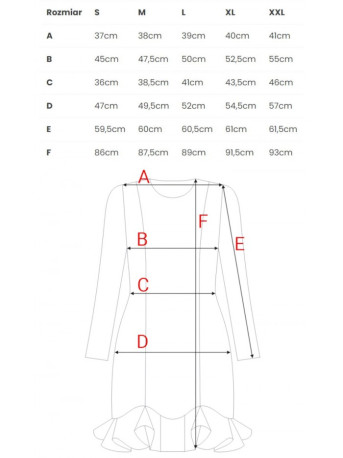 95% polyester 5% elastane MATERIAL Fabric: smooth woven fabric with a matte finish. PRODUCT DETAILS Neckline: classic, round Sleeves: long Fastening: concealed zip at the back Pockets: none Lining: none Details: decorative ruffle at the hem Model: M880 Designed and made in Poland The model in the photo is 171 cm tall and is wearing size S STYLE & CUT Style: slight