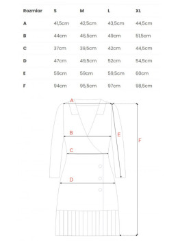 65 % poliesteris 30 % wiskoza 5% elastano INFORMACIJA APIE GAMINĮ: Audinys: audinys švarkas suknelė su apykakle ilgomis rankovėmis paslėptos sagos dekoratyviniai atvartai priekyje mini ilgis surišama aplink liemenį be pamušalo mūsų modelis yra 171 cm ūgio ir dėvi S dydį Sukurta ir pagaminta Lenkijoje