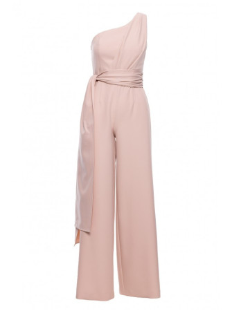 Elegantiškas juodas kombinezonas plačiomis kimono rankovėmis – puikus pasirinkimas tiek ypatingai progai, tiek kasdienai. Aukšta apykaklė ir surauktas priekis suteikia rafinuotumo, o atvira nugara su raišteliais – žaismingumo. Plačios kelnės ir šoninės kišenės užtikrina komfortą ir praktiškumą.