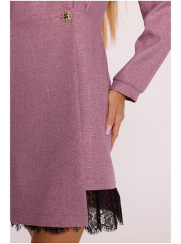 70% polyester 27% wiskoza 3% elastane MATERIAL Fabric: Tweed woven fabric with lace detailing PRODUCT DETAILS Neckline: Deep V-neck Sleeves: Long Closure: Fastened with an inner concealed button and a decorative outer button Pockets: None Lining: No Pattern: Mélange Details: Decorative gold button at the waist, lace insert in the bottom hem Model: M871 Designed and made i