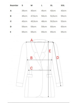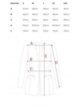 90% cotton 10% elastane MATERIAL Material: smooth sweatshirt knit, loopback underside, weight 260 g PRODUCT DETAILS Fastening: open blazer, waist tie with belt loops Collar: none Pockets: none Sleeves: long, wide, finished with cuffs Lining: none Model: B297 Designed and made in Poland from fabric produced in Poland The model in the photo is 171 cm tall and is wearing size