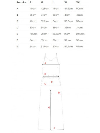 95 % poliesteris 5 % elastano Lengvas vasarinis kombinezonas su lengvomis plačiomis klešnėmis, papuoštas iškirpte su spageti dirželiais. INFORMACIJA APIE GAMINĮ: audinys vientisas kombinezonas su spageti petnešėlėmis elastingas liemuo plačios kojos su šoninėmis kišenėmis mūsų modelis yra 171 cm ūgio ir dėvi S dydžio drabužius.