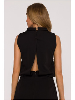 Šis juodas kombinezonas su atvira nugara – puikus pasirinkimas vakarui, kai norisi atrodyti elegantiškai ir drąsiai. Platėjančios klešnės, aukšta apykaklė ir atvira nugara su subtiliu užsegimu suteikia jam išskirtinumo, o šoninės kišenės – praktiškumo. Modelis yra 171 cm ūgio ir dėvi S dydį. Sudėtis: 95% poliesteris, 5% elastanas.