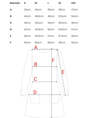 Example Shown : SIZE XL, Hem to Hem 84cm OR 33 ,SIZE L, Hem to Hem 84cm OR 33 ,SIZE M, Hem to Hem 84cm OR 33 ,SIZE S, Hem to Hem 84cm OR 33